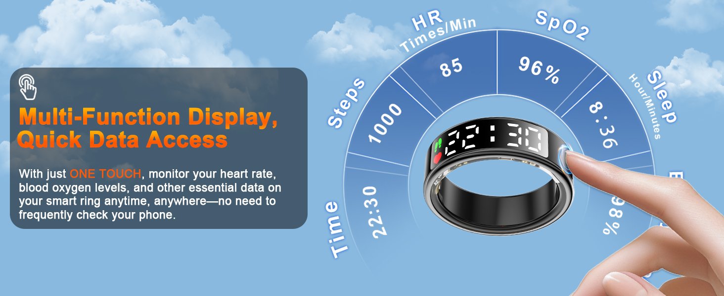 HD LED Touch Screen: Control your ring and view your key stats like time, steps, and heart rate at a glance on the crisp, clear LED display with a simple touch.