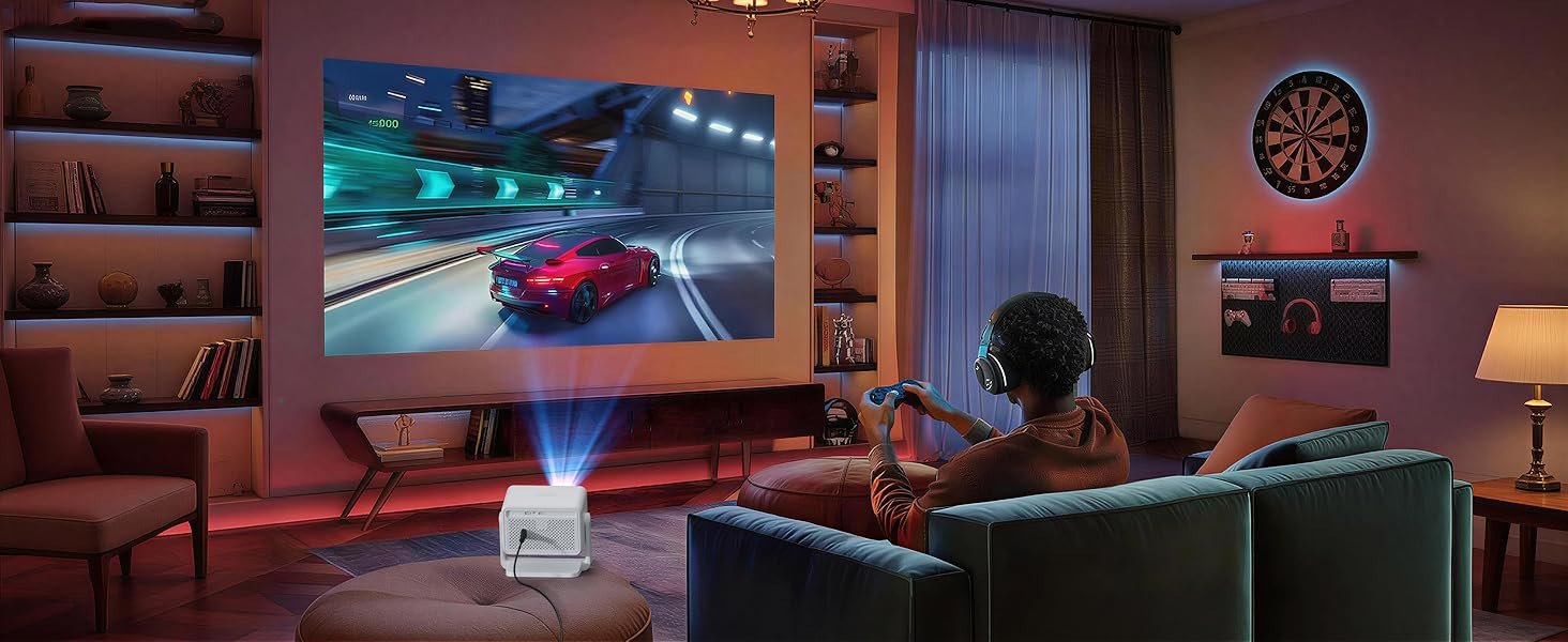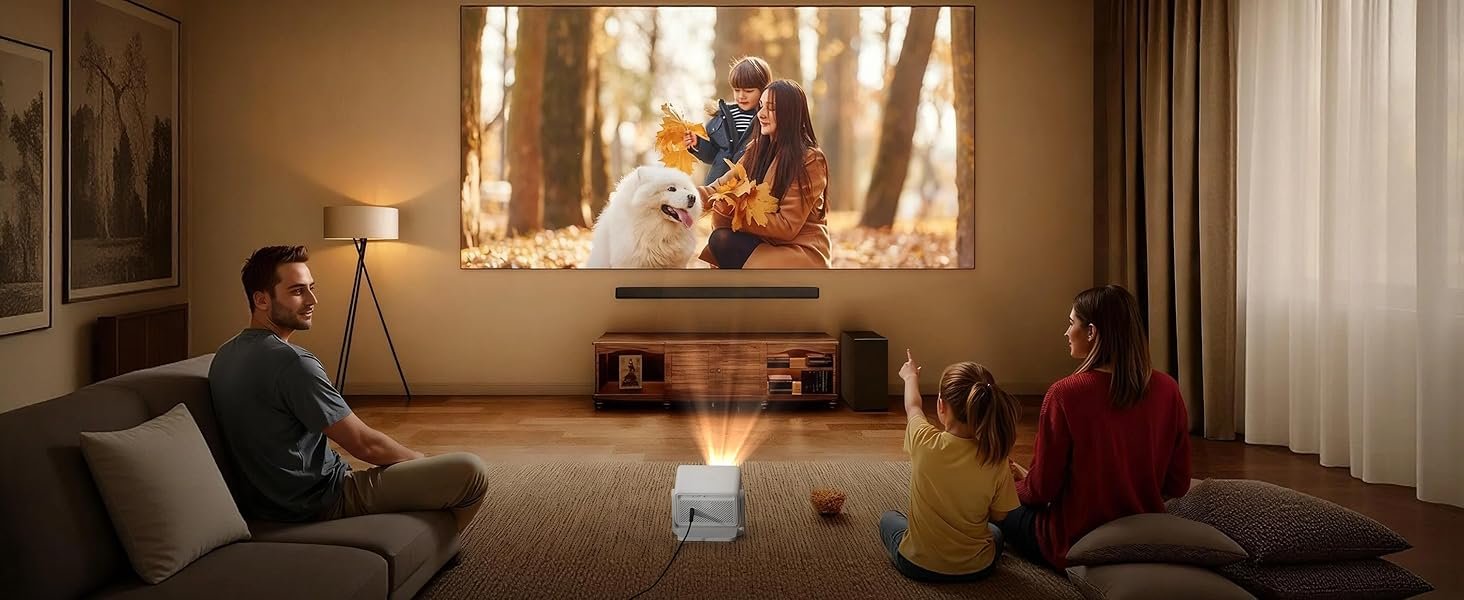 【Full Auto-Correction System, Perfectly Aligned from the Start】 Never manually adjust your movie projector again. Our Auto Focus, Auto Keystone, Auto Obstacle Avoidance, and Auto Screen Alignment work in unison in this projector auto focus to deliver a crisp, rectangular image in seconds. Intelligent sensors continuously monitor the environment, ensuring the picture stays sharp and perfectly fitted—whether using it as a wall projector, ceiling projector, or on any uneven surface.