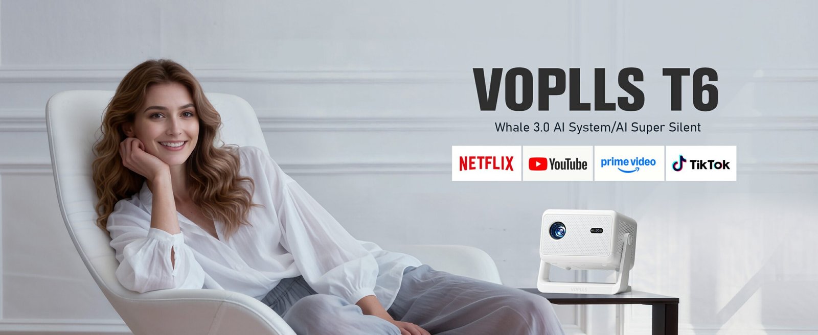 【Entertainment HubSmart Whale OS Compatible with Netflix, Your Personal Streaming Hub】 Experience a seamless smart ecosystem with the 3.0 AI Whale OS in this smart projector, which comes pre-loaded with YouTube and Prime Video. Access hundreds of other downloadable apps on this projector with built-in apps for endless entertainment—no external stick required. (For an even wider app selection, explore our VOPLLS GTV Series projectors.) With regular updates and a secure interface, your personal streaming projector hub is always ready and up-to-date.