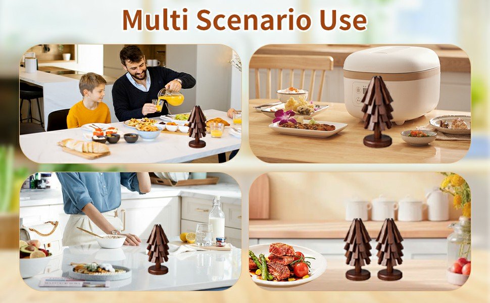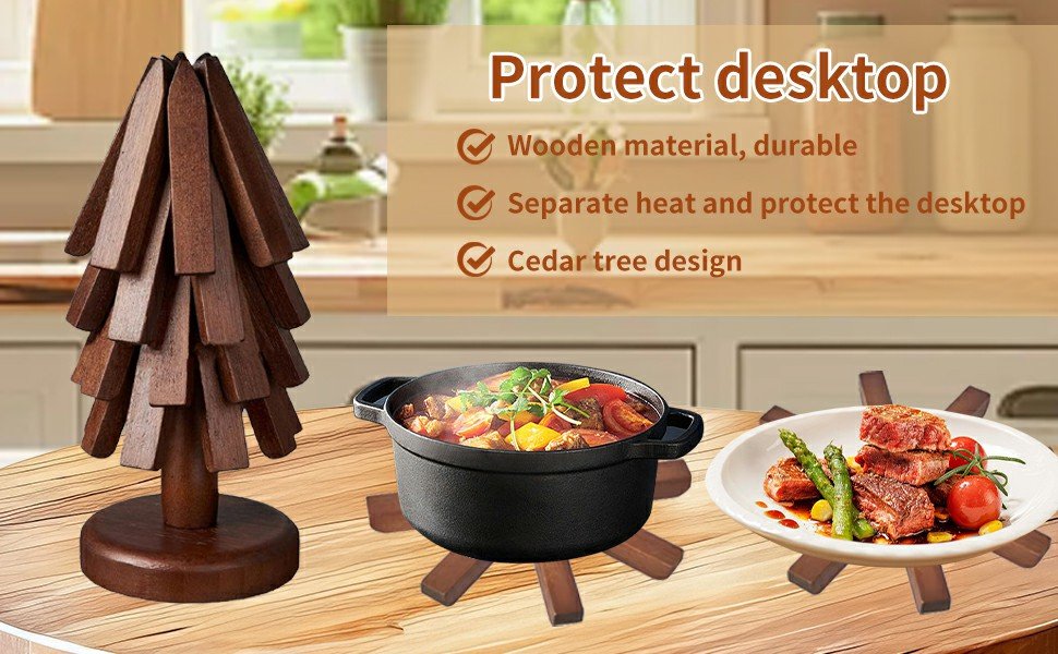 Wooden Tree Trivet Set: Trivets for hot dishes is made of wood and consists of 3 or 4 pieces of trivet + 1 bracket to Prevents damage to countertops and table tops