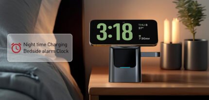 Wake up powered up. This compact bedside hub combines a crisp LED alarm with a wireless fast-charging station that tops up your watch, phone and earbuds—all at once. A single 15 W surface delivers cable-free speed: at. Just set the time, drop your devices, and start tomorrow fully charged.