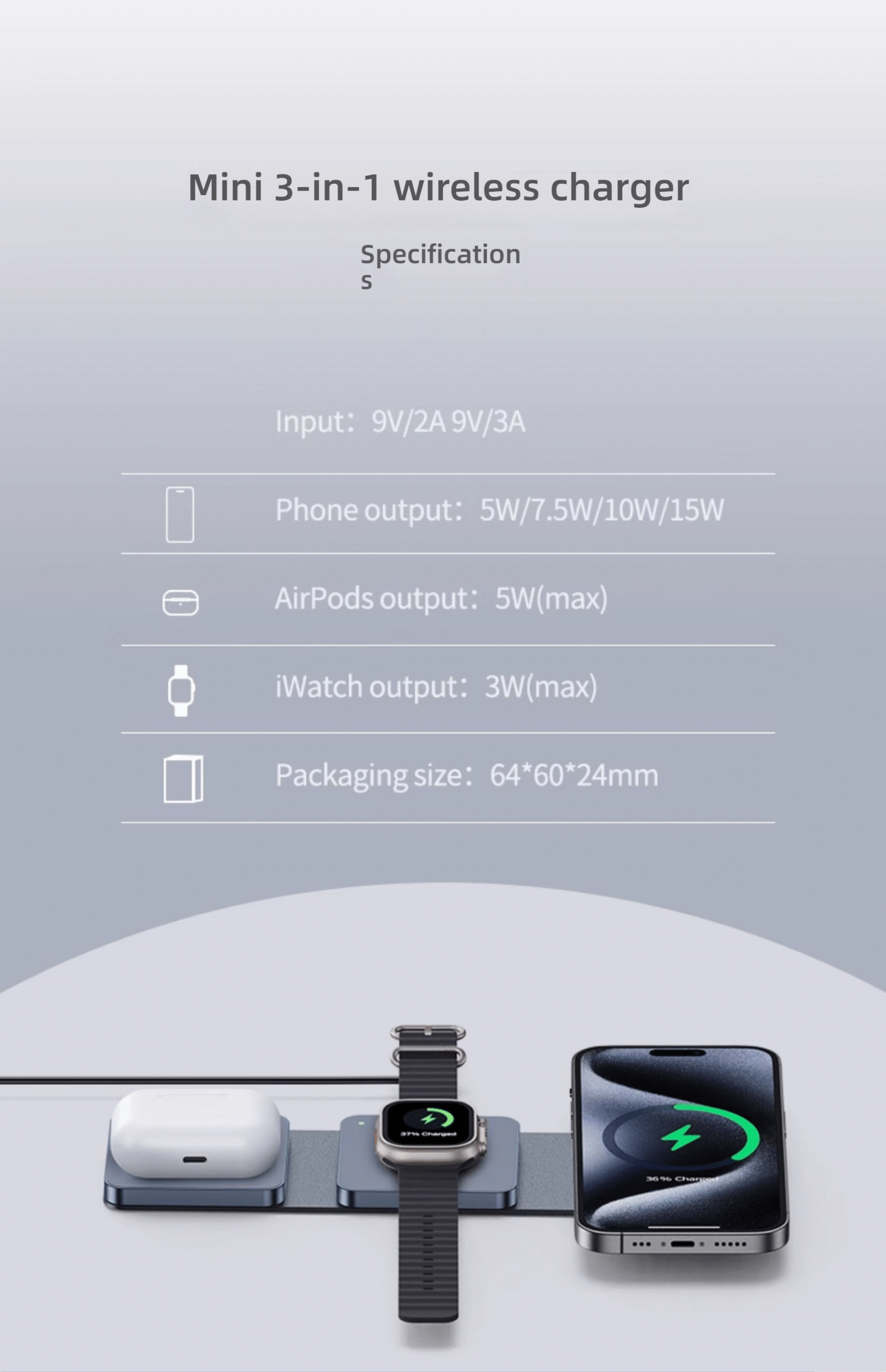 Crafted from aviation-grade aluminum alloy, our 3-in-1 wireless charging station is as durable as it is elegant. The precision-milled metal body dissipates heat 30 % faster than plastic alternatives, ensuring cooler, safer charging for your iPhone, Apple Watch, and AirPods—all at once. The sleek metallic finish resists fingerprints and complements any desk or nightstand, turning raw functionality into a statement of minimalist luxury.