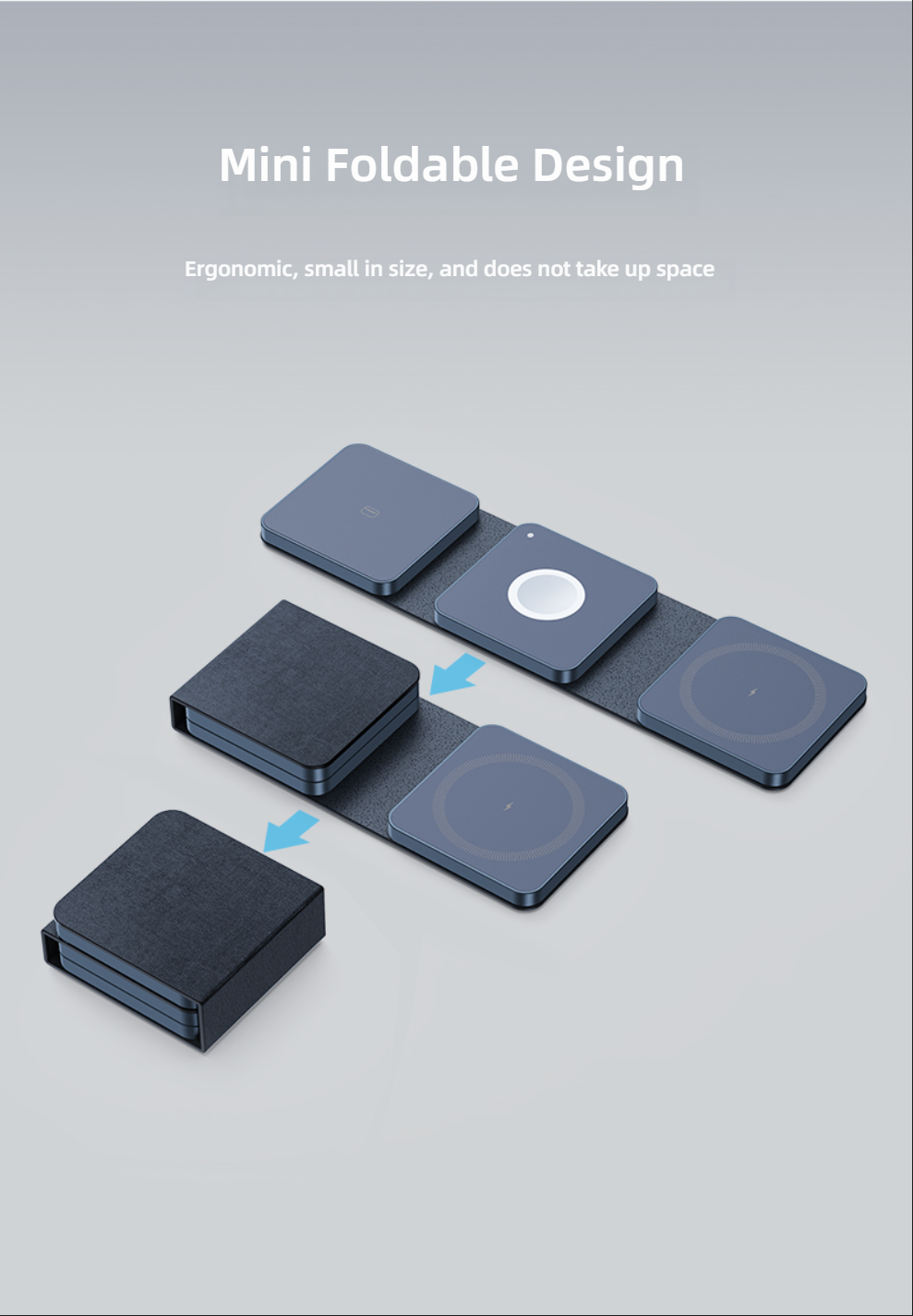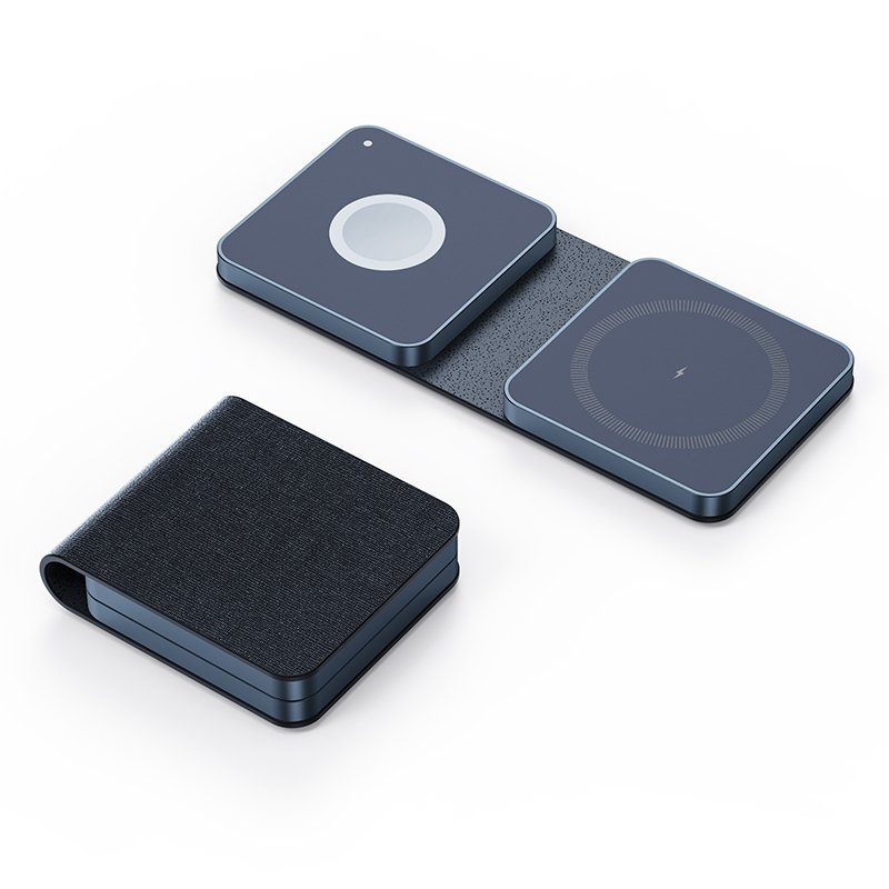 Denim Texture Folding 3-in-1 Wireless Charger for Apple Magsafe (3-in-1 Magnetic Charging Stand for iPhone, Samsung Ultra AirPods, 3-in-1, Cloth Color)