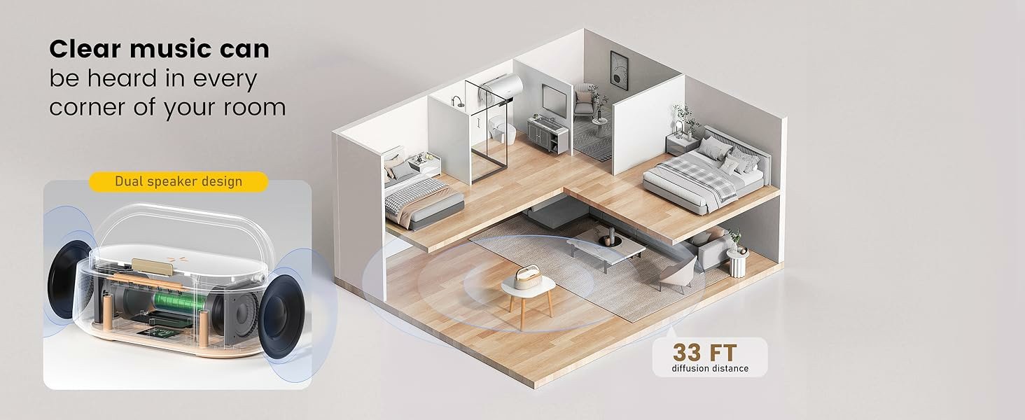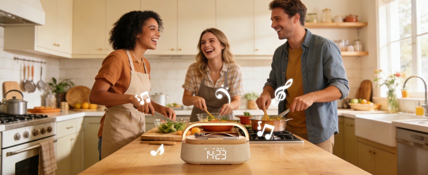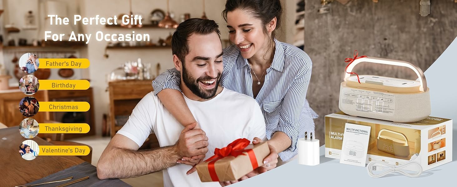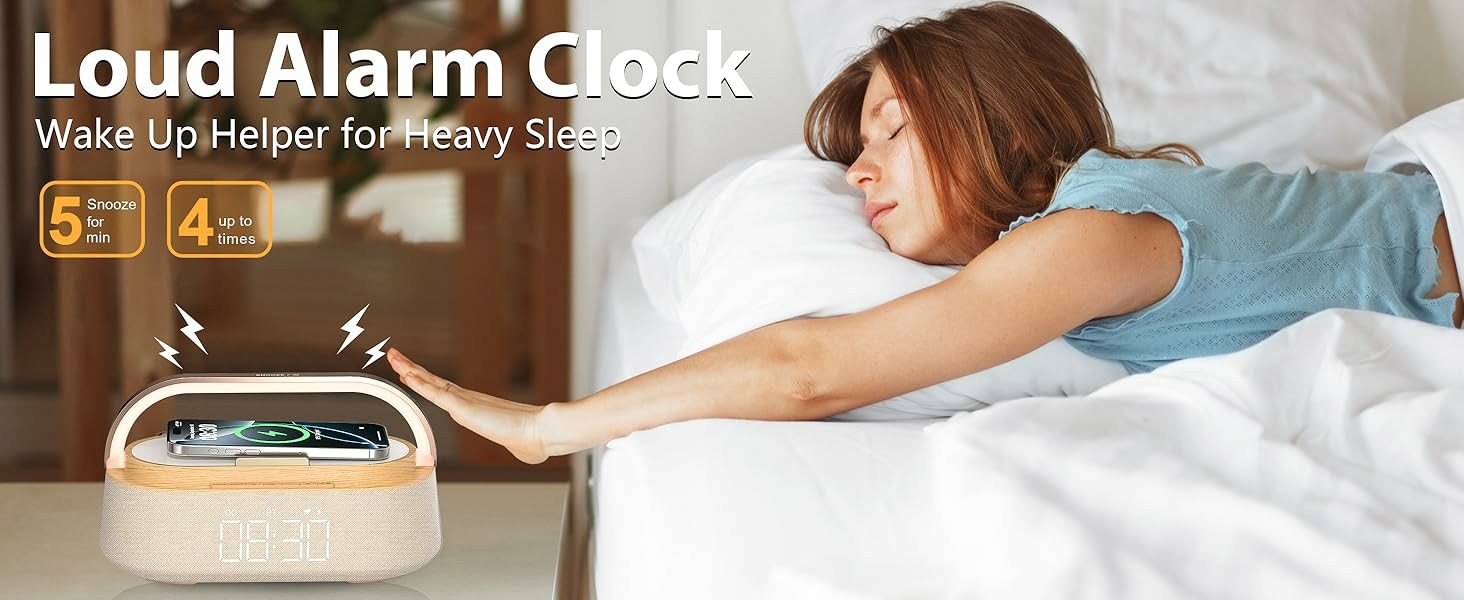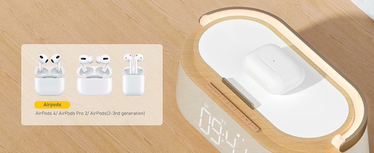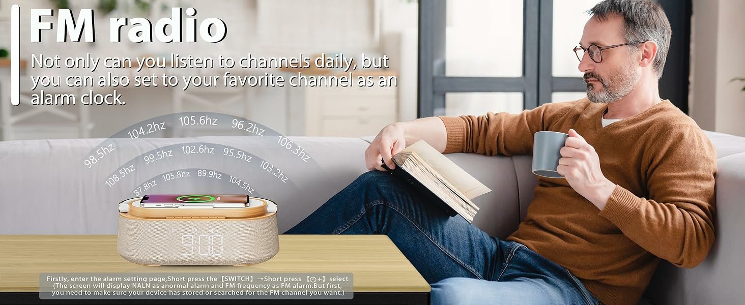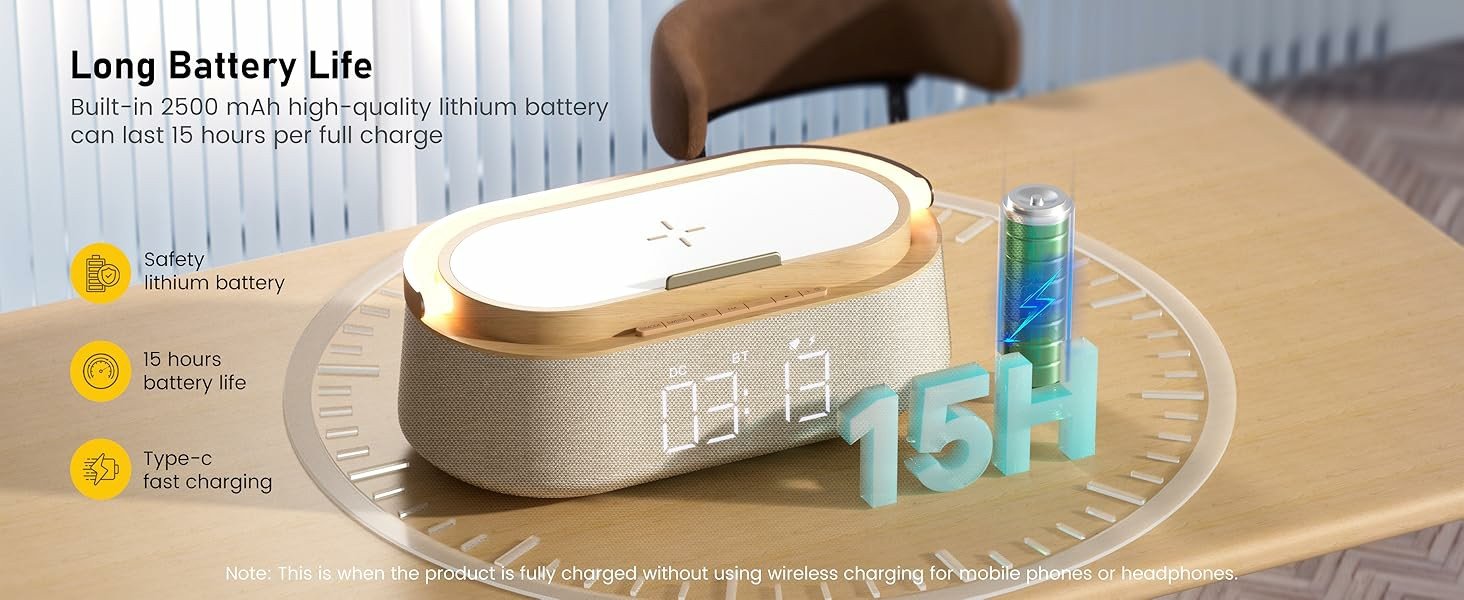 Bluetooth Speaker with Wireless Charge FM Radio 2500mAh Battery, LED Night Light Suitable for Home,Bedroom,Office,Gifts