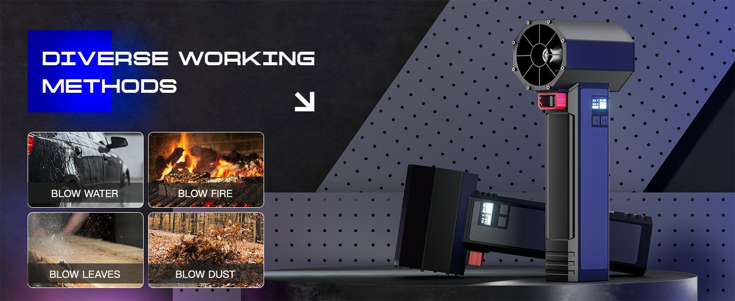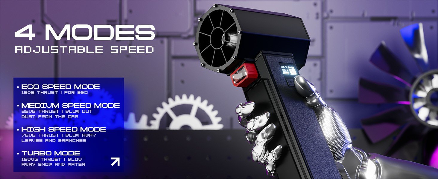[4-Speed Pro Control from Wheel Drying to Leaves Blowing]: Thanks to 4 adjustable speed settings, our turbo blower allows you to customize the thrust range from 0.5lb to a whopping 3.6lb. Easily press and hold to access 10-Second-Turbo-Mode providing the max330CFM airflow intensity for drying your car, eliminating water spots, and removing debris. Its portable and user-friendly design ensures maximum convenience.