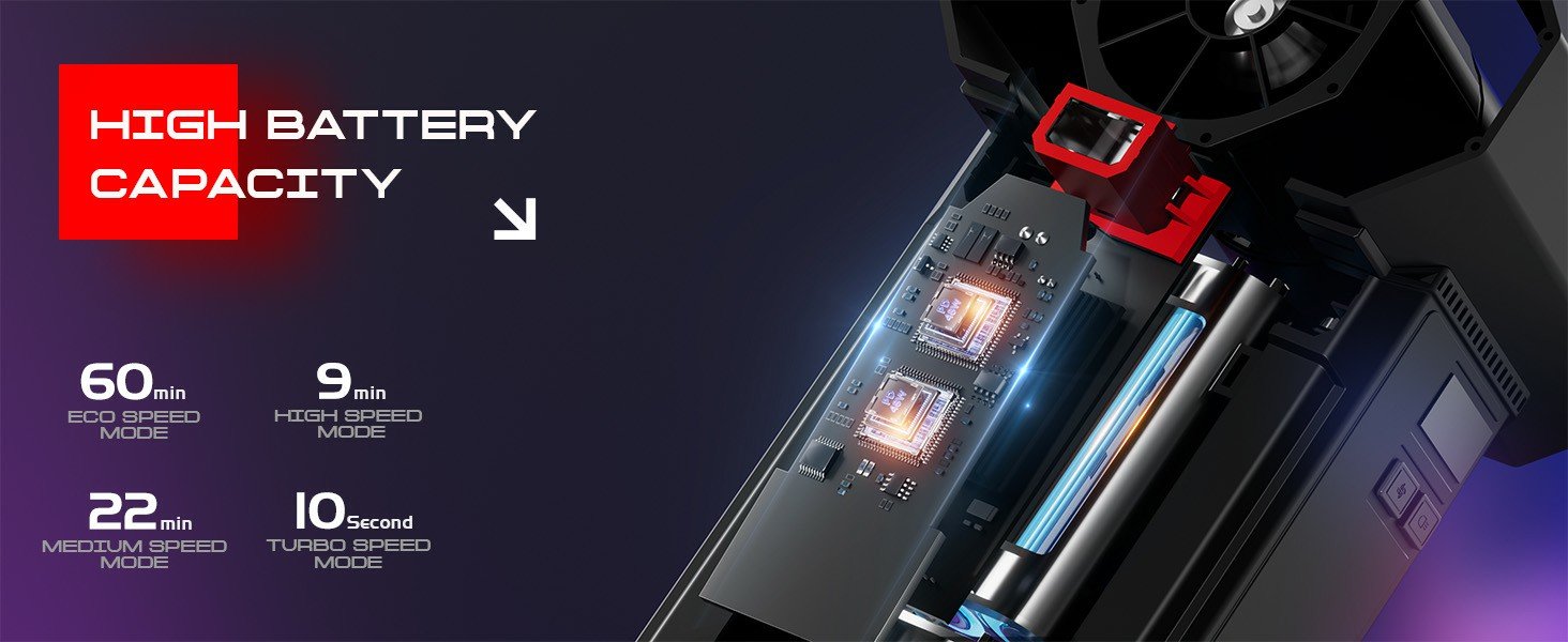 [Super Long Battery Life and LED Display]: Thanks to the long-lasting 4000mAh battery, ccompanied by a rapid charger for 3-4 hour full replenishment,you can enjoy extended usage time and complete your car drying tasks without interruptions. The built-in LED display keeps you informed about the battery status, voltage, and current, ensuring you never run out of power unexpectedly.