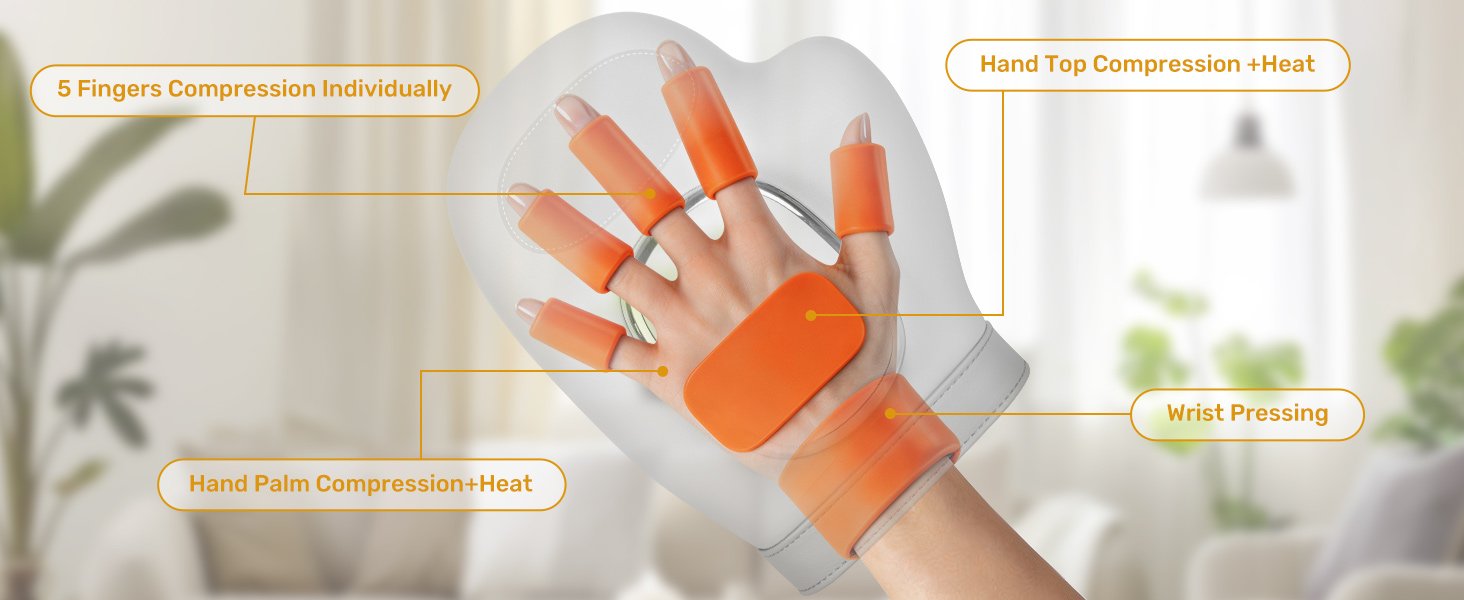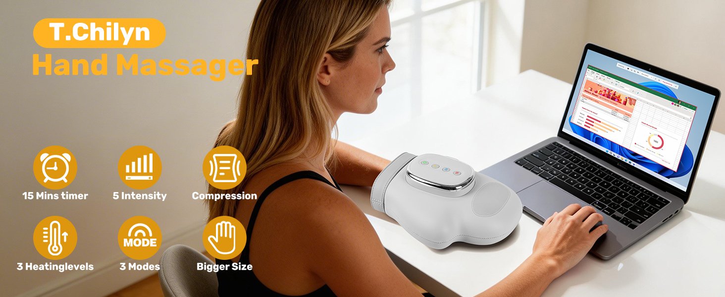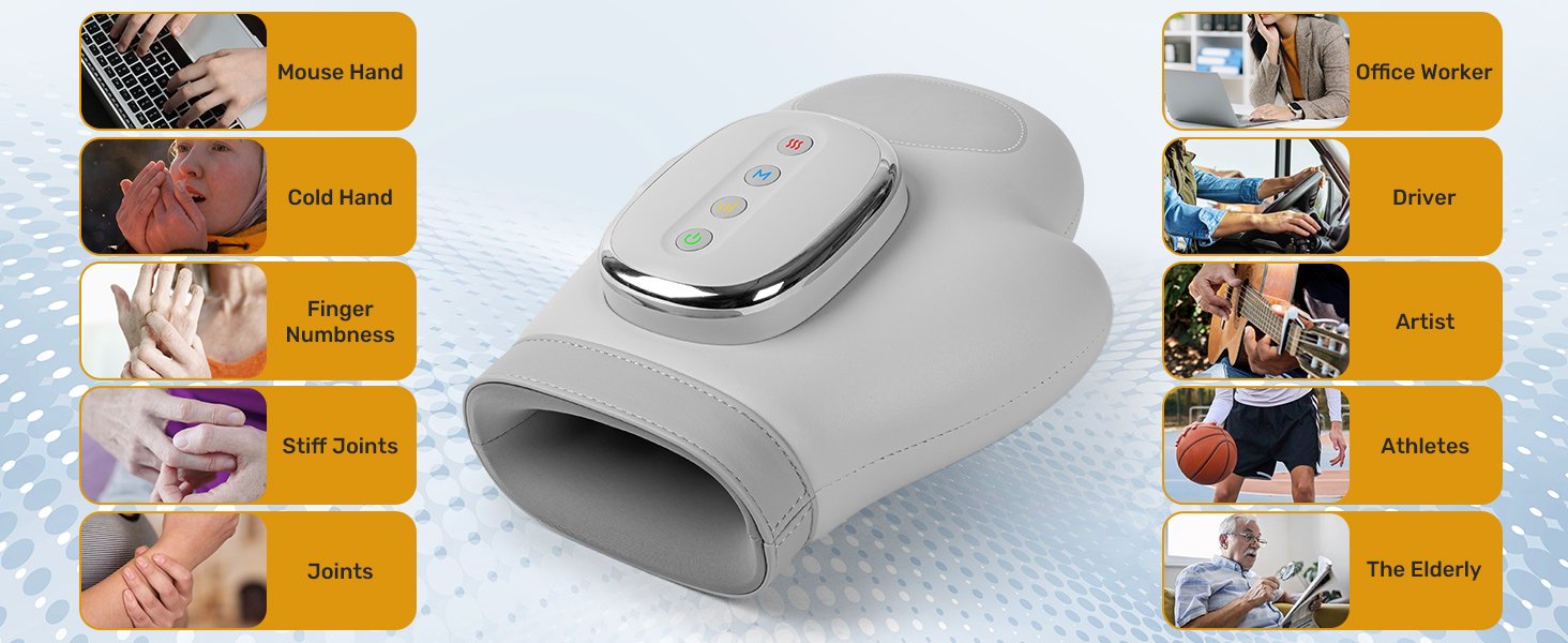 Hand Massager with Heat and Compression, 2026 Professional Cordless Electric Hand Massager with 3 Massage 5 Compression 3 Temperatures Suitable for Wrists and Fingers (White)