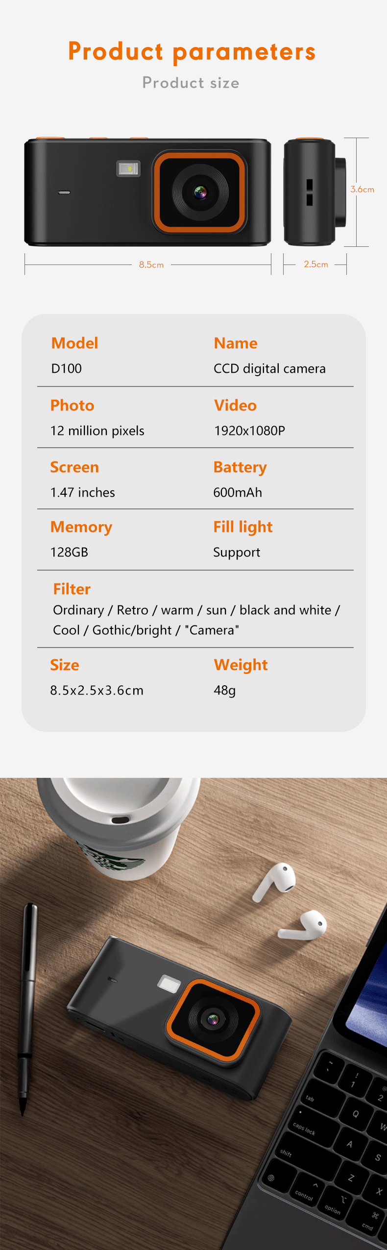 Relive the nostalgia of classic photography with the D100—a high-definition retro camera that combines vintage design with digital convenience. Equipped with a CCD sensor, it delivers uniquely warm and authentic image quality perfect for creative expression.