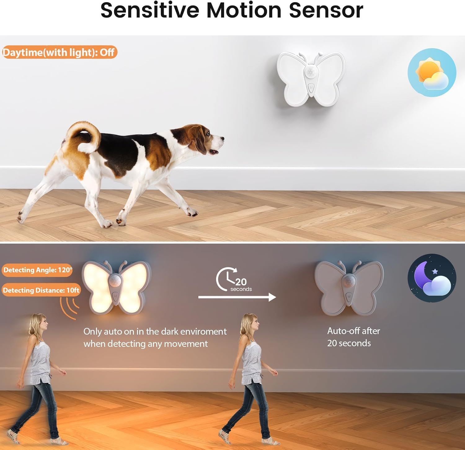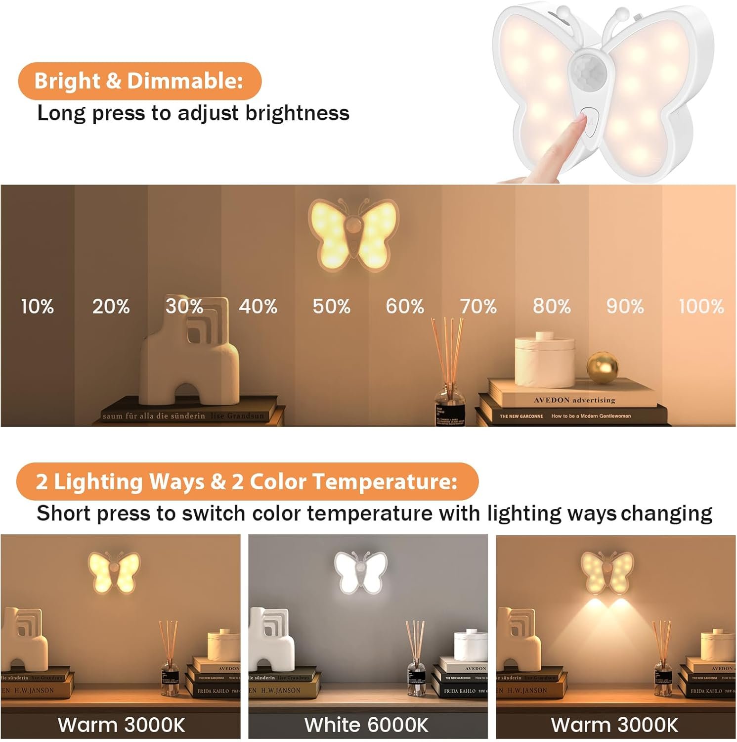 MY BEAUTY LIGHT Bright Dimmable Butterfly LED Night Light, Smart Motion Sensor Night Light Lamp with Spotlight and 2 Color Temperature, Magnetic Rechargeable Nightlight for Kids Room, Wall
