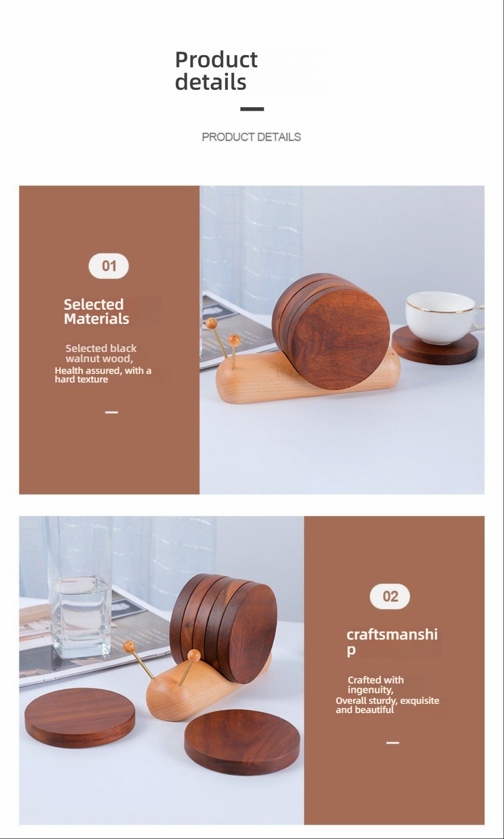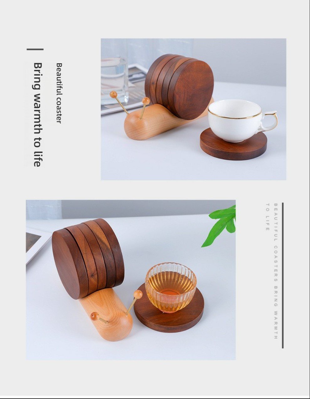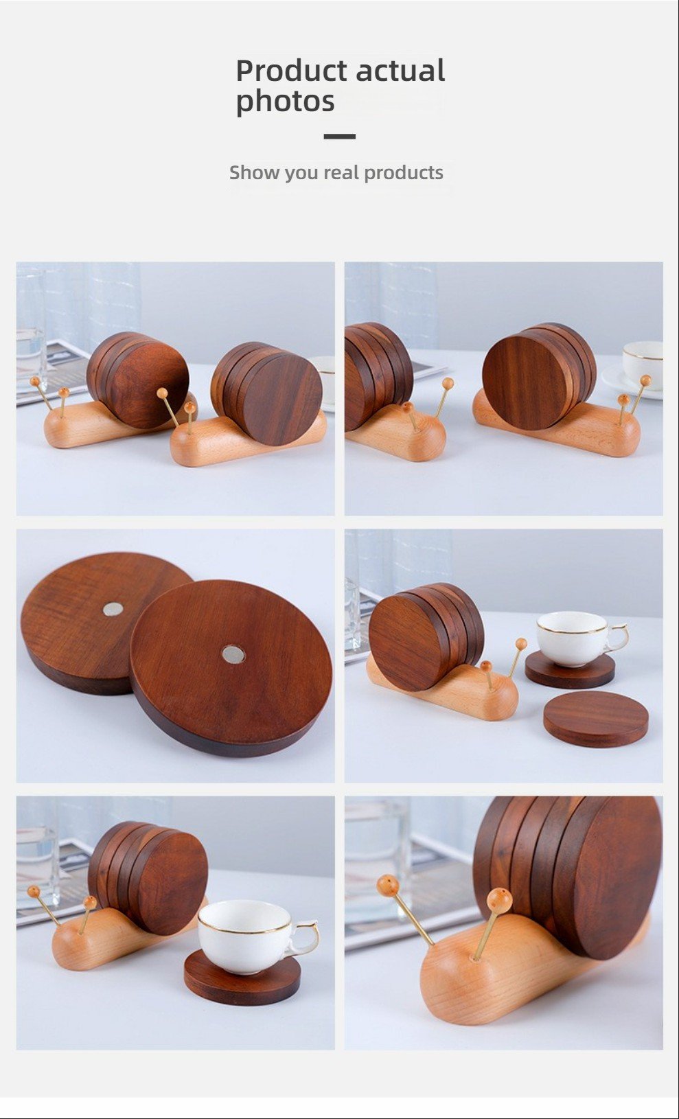 New Snail Placemat – Tree-shaped Dishwashing Set, Wooden Windmill Coaster Set with Stand for Easy Storage – Suitable for Hot Pot, Fryg Pans, Teapots, Insulated Trays – Multifunctional Decoration