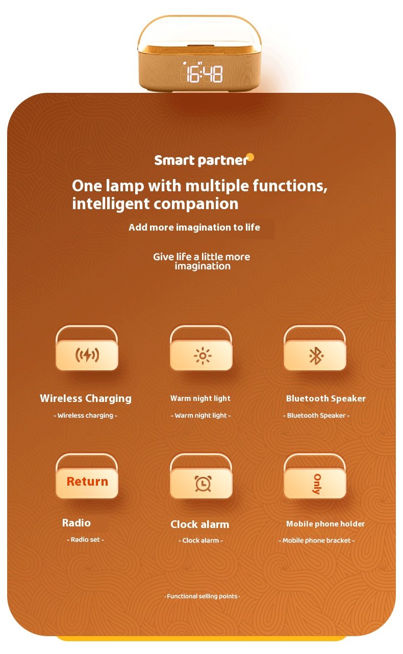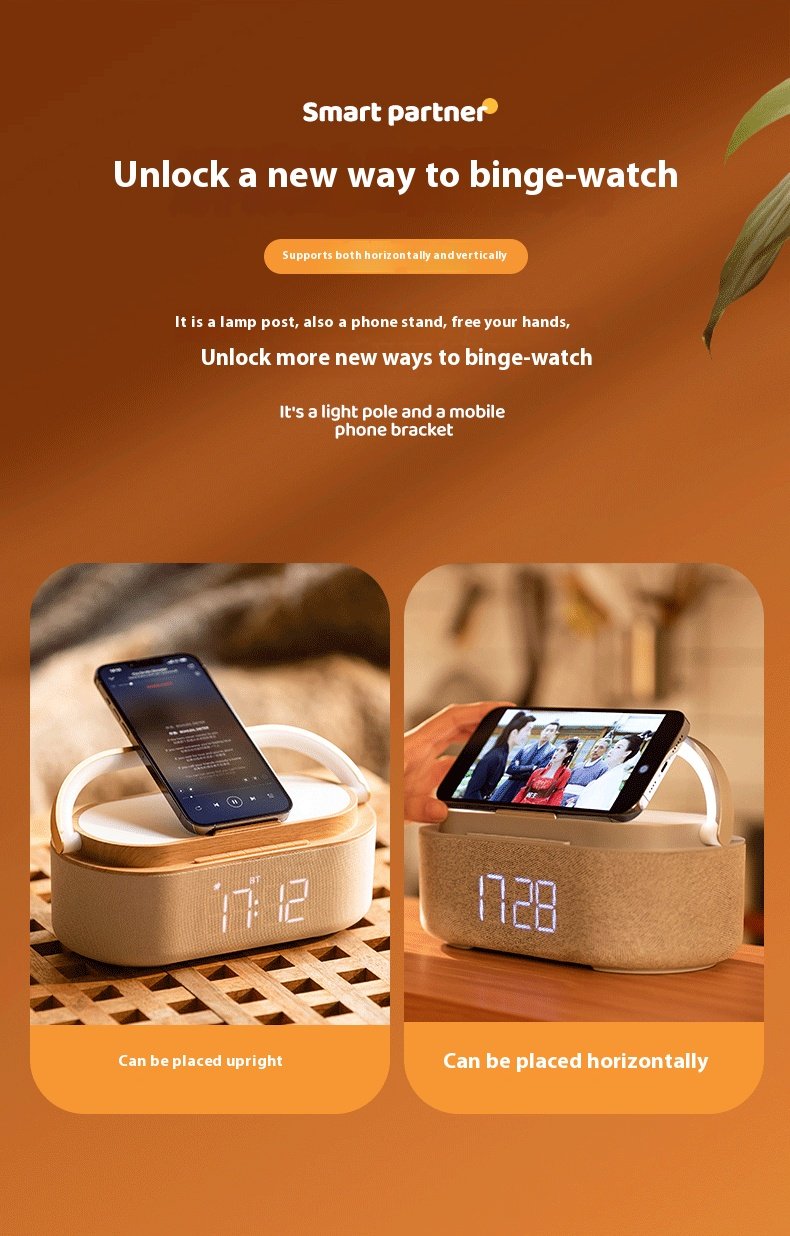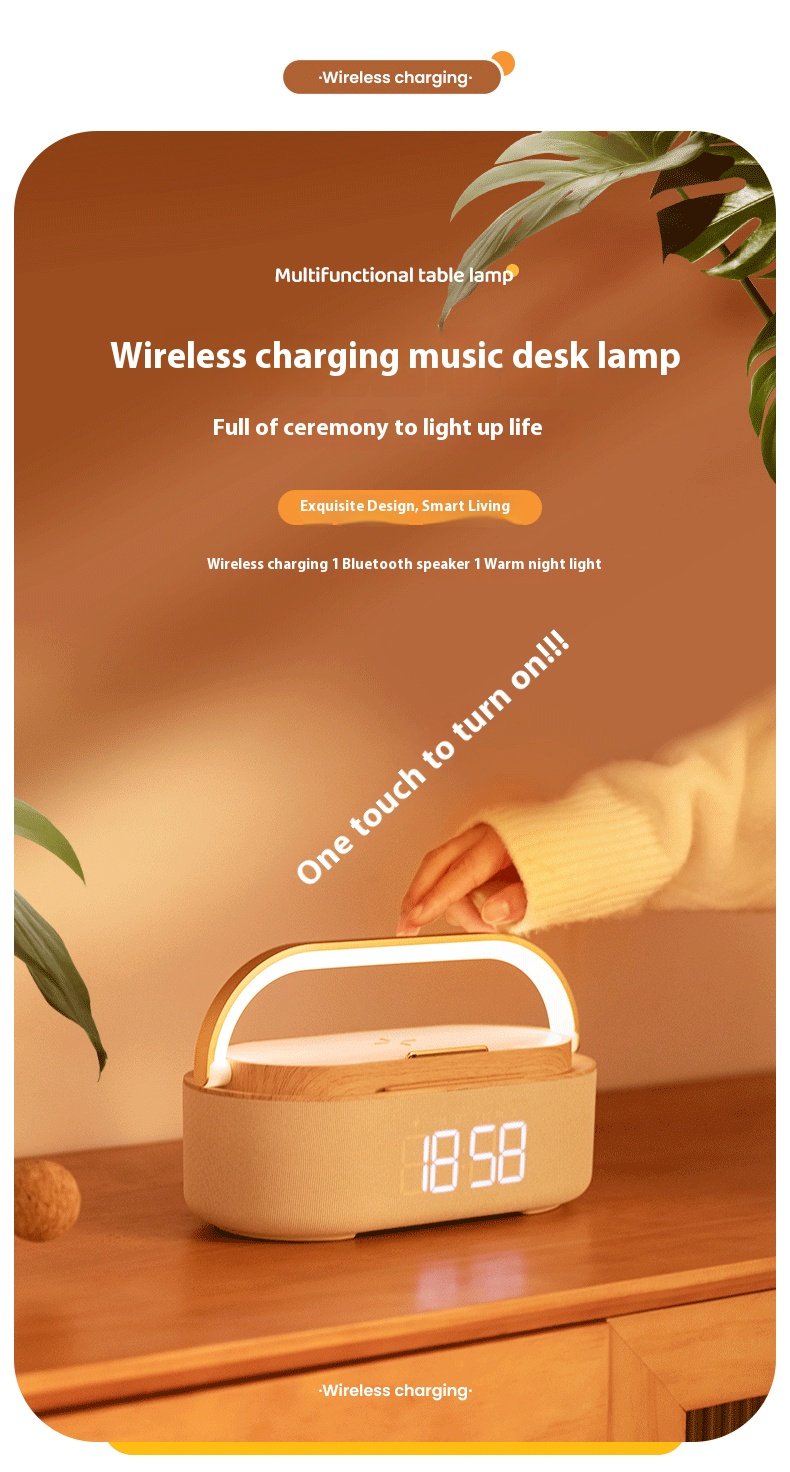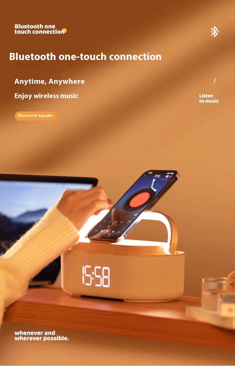 Portable Multi-Function Wireless Charger Bluetooth Speaker Clock Alarm Clock Touch Night Light